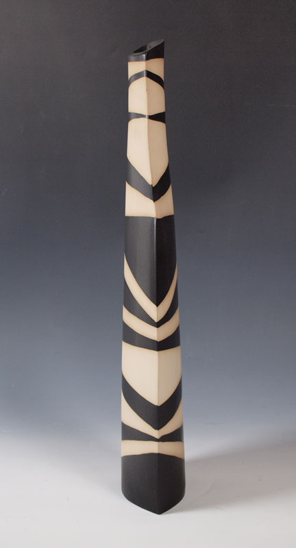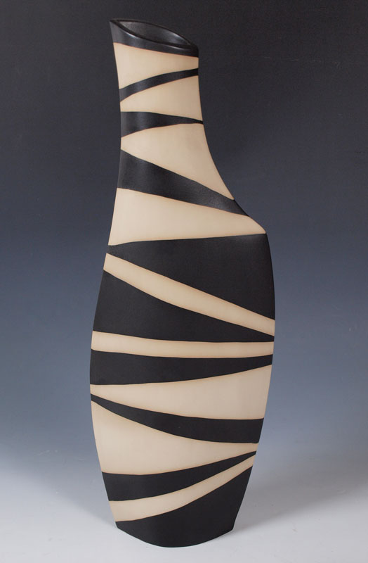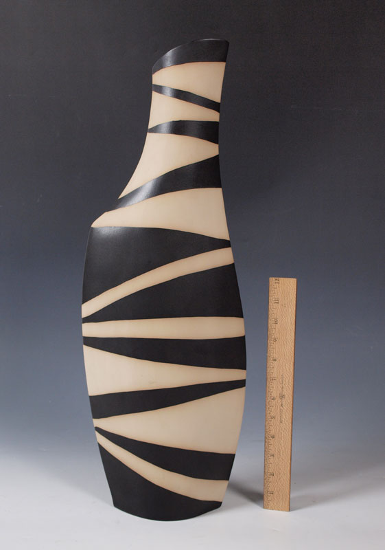 ZEBRA STRIPED POTTERY VASE STAMPED GERMANY: Impressed mark with 2 stars and Germany, measures 23 1/4'' h. x 8 1/4'' x 3 1/4''.