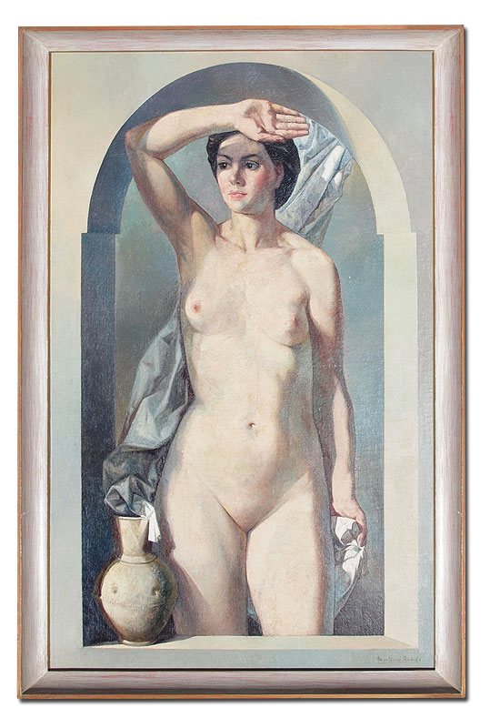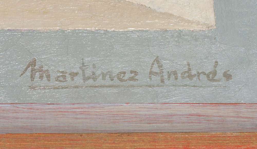 ANDRES, Antonio Martinez, (Spanish/American, 1917-1966): ''Arco De Alcanada'', O/C mounted on Wood Panel, 56 1/2'' x 37 1/2'', signed lower right, encased in antiqued gesso frame with wear, 61 1/2'' x 42''. Condition - Sporadic in-paint, professionally restored in 1984. This painting won Andres the Spanish Cartagena Fellowship in the 1940's, and once hung in the St.Petersburg Museum of Fine Art.