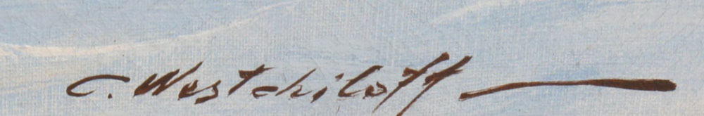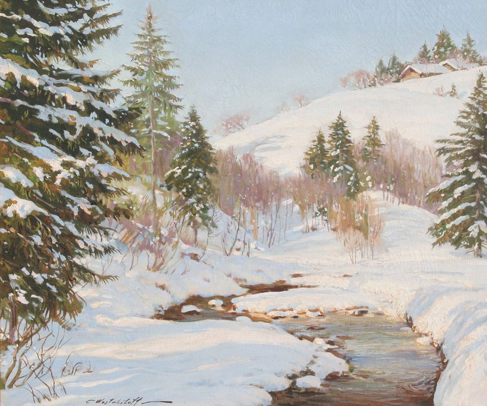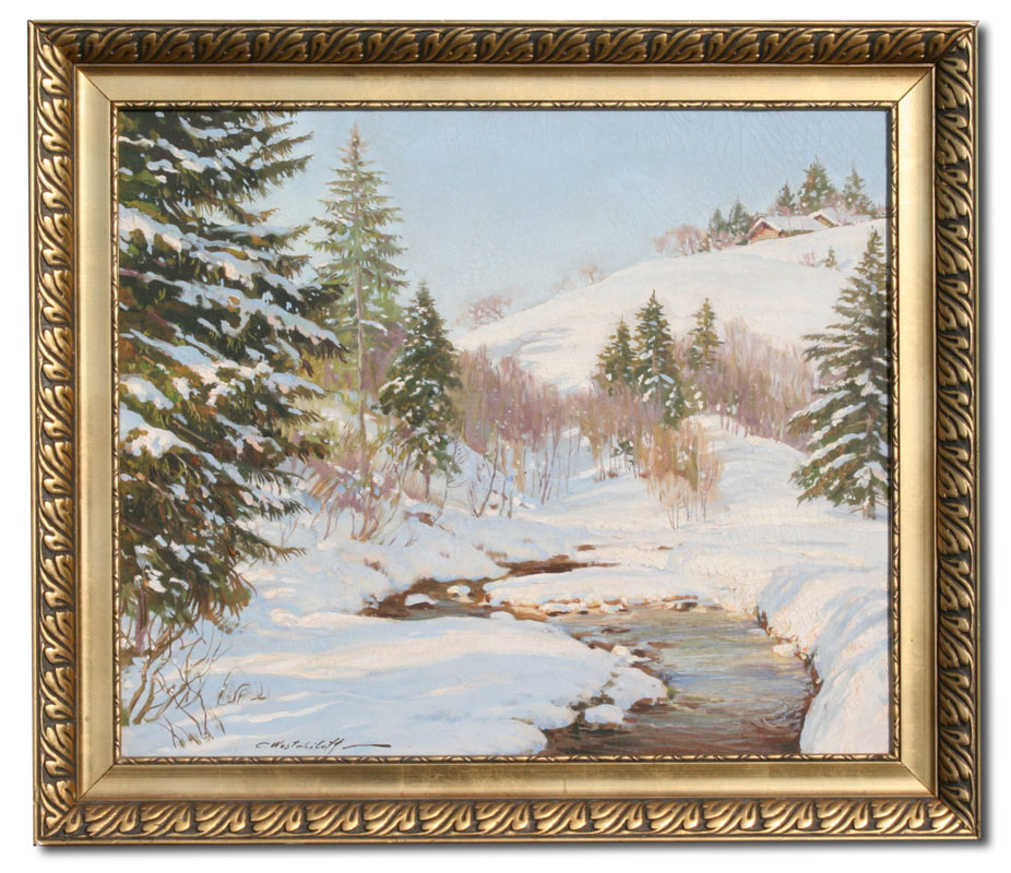 WESTCHILOFF, Constantin Alexandrovitch, (American, 1877-1945): Snowy Stream in a Winter Landscape, OIL/Canvas, 21'' x 25'', signed, framed, 25'' x 29 1/4''.