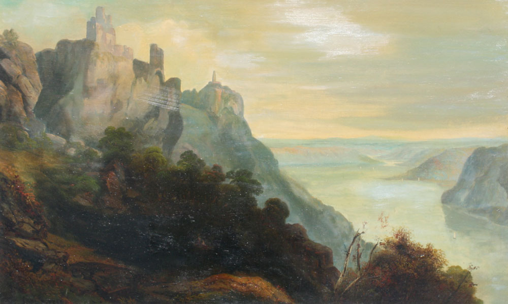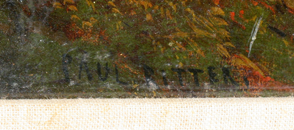 RITTER, Paul, (American, 1829-1907): Mountain Lake with figures, Oil/Canvas, 22'' x 36'', signed, framed 30 1/2'' x 44''.