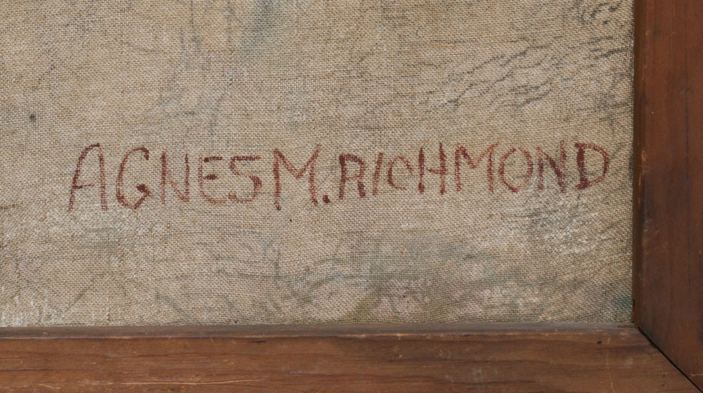 PORTRAIT OF A YOUNG WOMAN SIGNED AGNES RICHMOND: Portrait of Young Girl in Dress, OIL/Canvas, 29'' x 23'', signed and inscribed verso Agnes Richmond, framed 31'' x 26''.