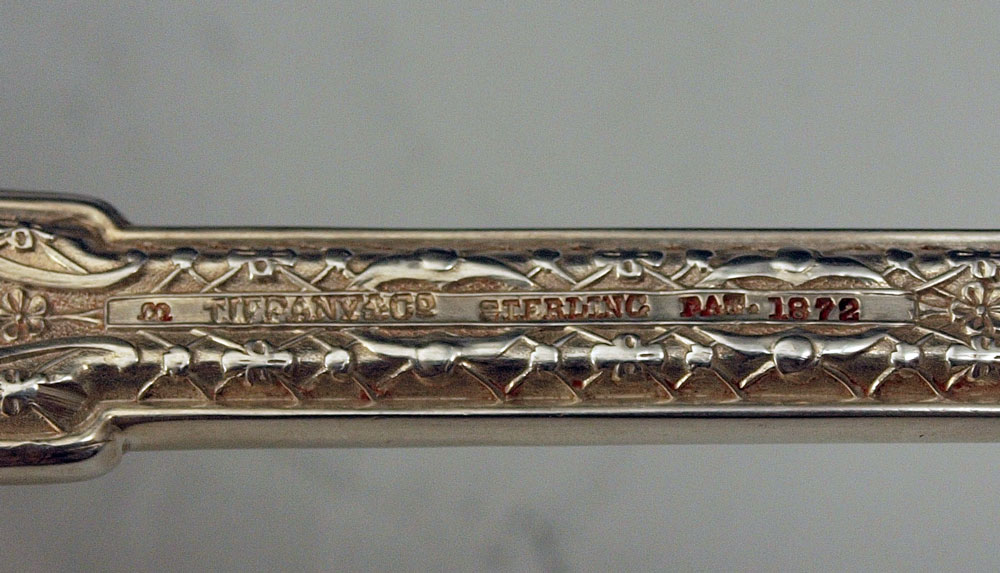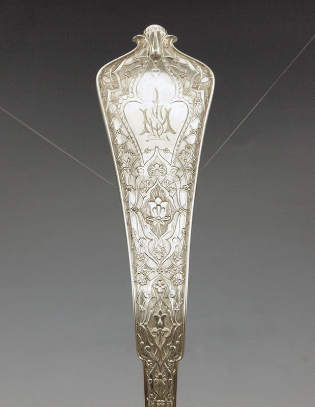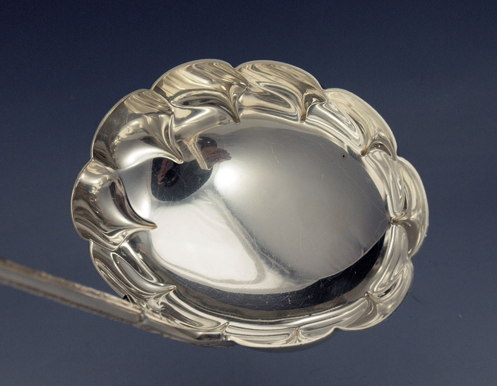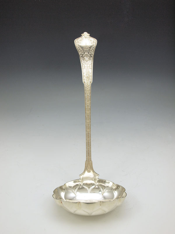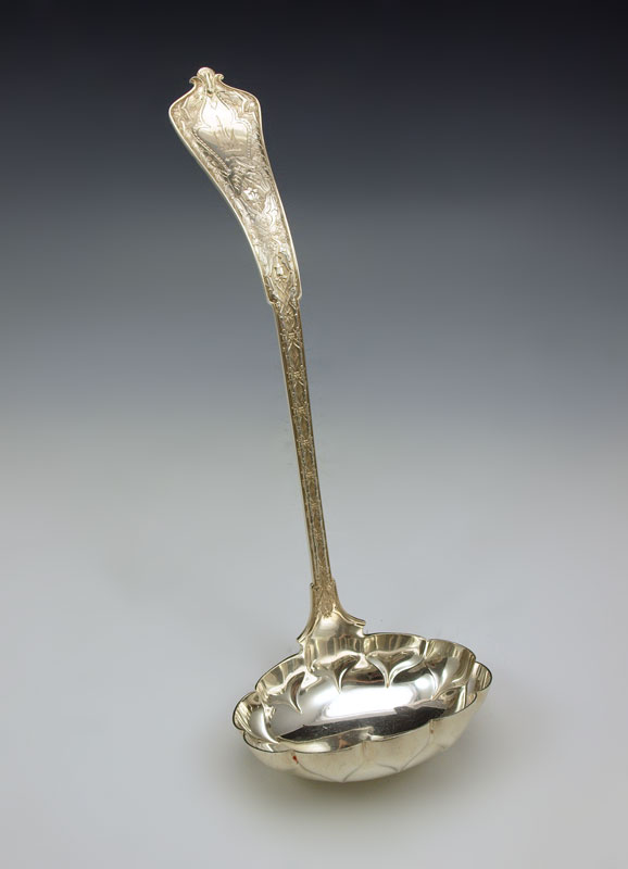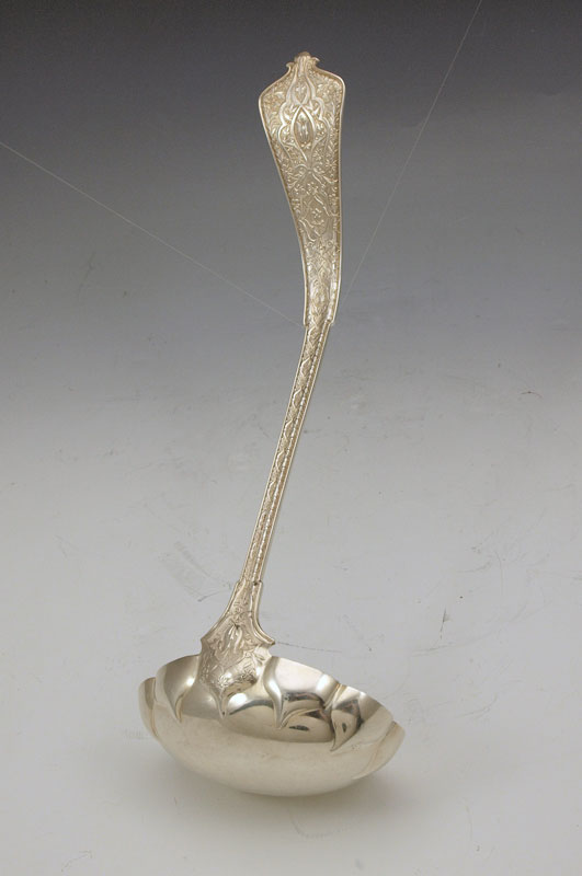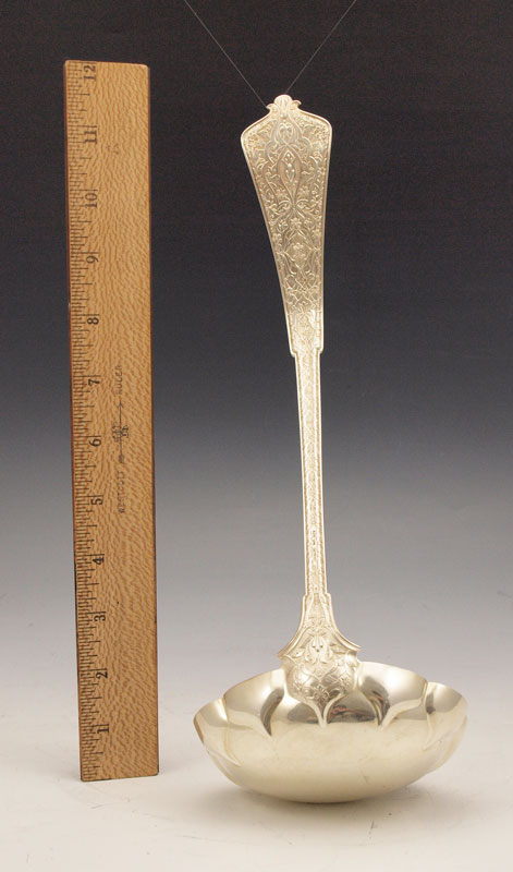 TIFFANY STERLING PUNCH LADLE IN THE PERSIAN PATTERN: Monogrammed. 12'' length. Approx 8.1 troy oz.
