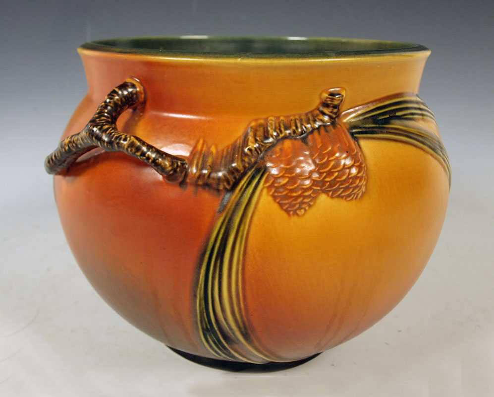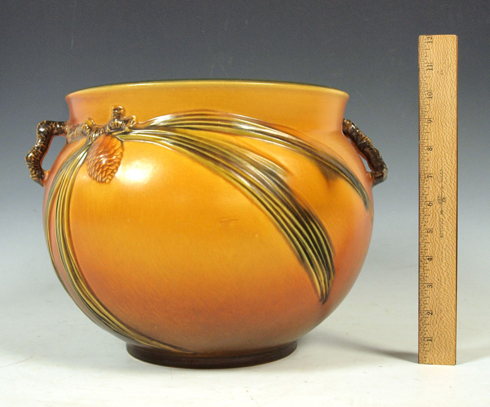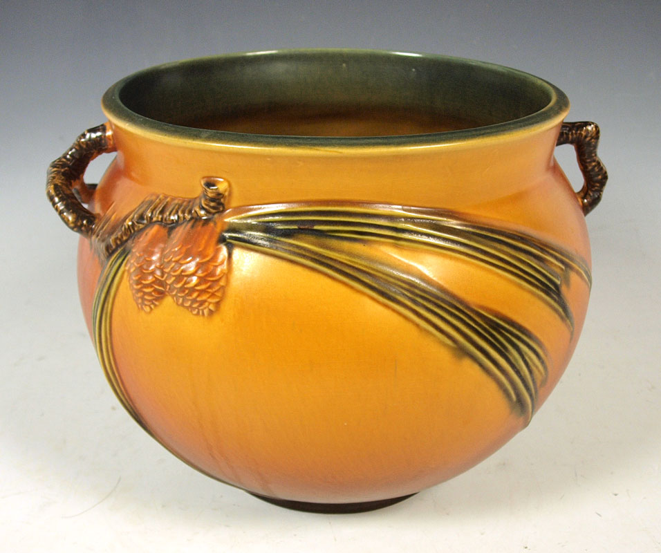 ROSEVILLE POTTERY PINECONE JARDINIERE: Brown, 10''.