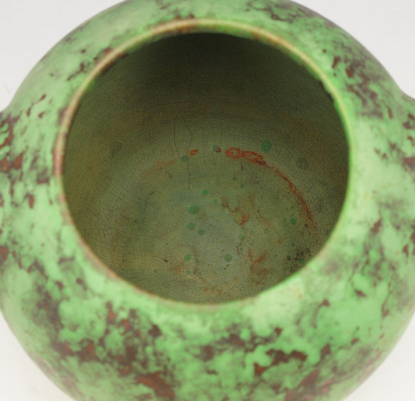 WELLER COPPERTONE JARDINIERE: 6 1/2'' dia., handles.