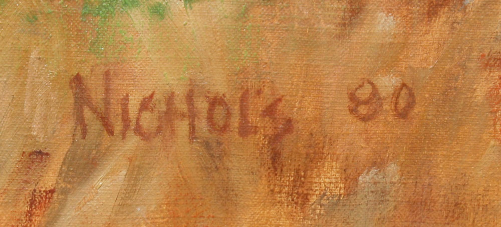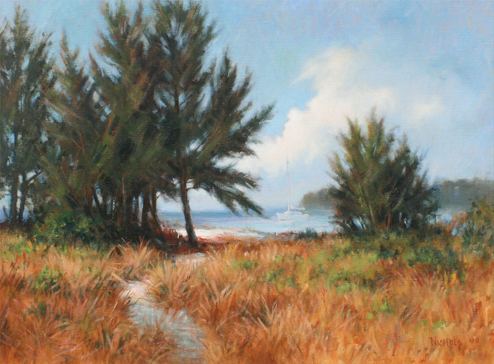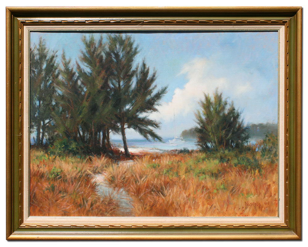 NICHOLS, Roy, (American, 20th C.): ''Pine Harbor,'' Florida, OIL/Canvas, sight size 30'' x 40'', signed and dated '80, Roy Nichols business card affixed verso with title and price of 750, framed 37'' x 47''.