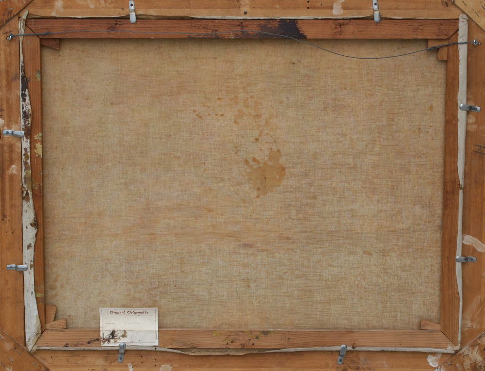 CONDITION: Very heavy impasto. Frame has some wear and missing gesso.