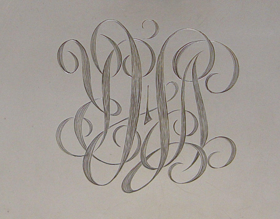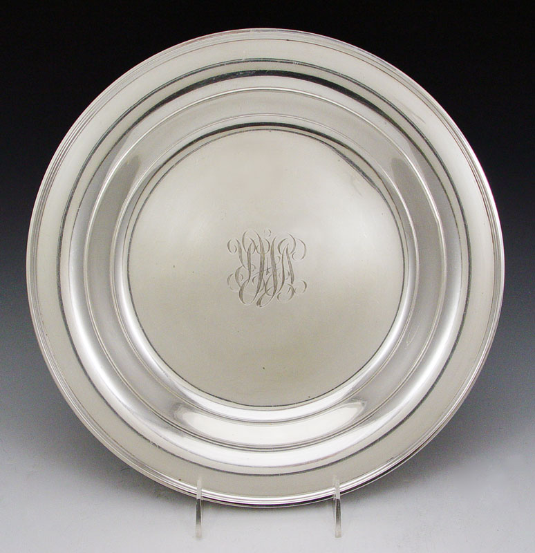 LARGE ELLMORE STERLING LOW BOWL: Monogrammed. Approx. 23.5 troy oz. 2'' h. x 13'' dia.