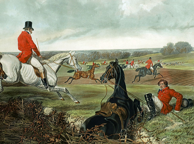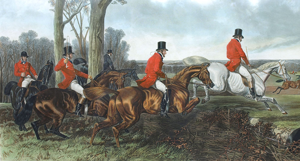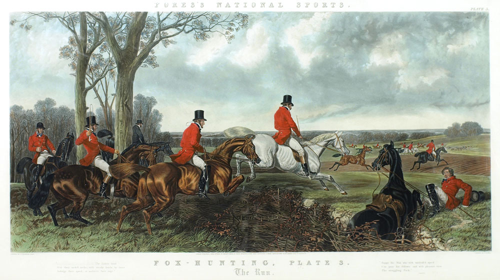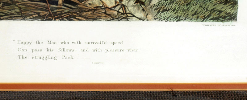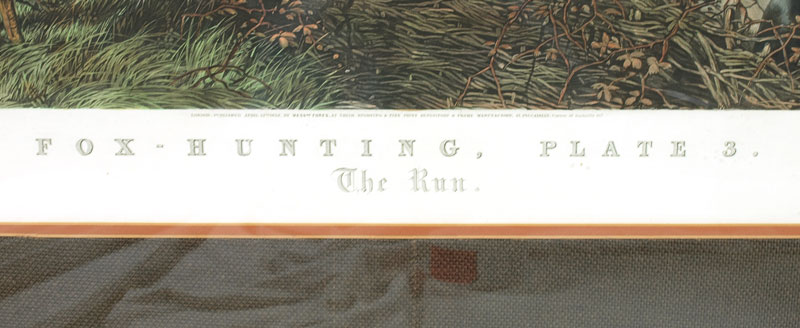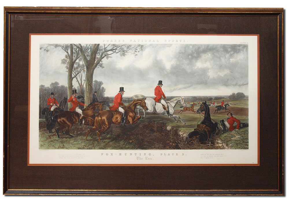 LARGE FOX HUNT ENGRAVING AFTER HERRING: Fores's National Sports, Fox Hunting, ''The Run'', sight size 25 1/2'' x 45'', framed, 30'' x 56 1/2''.
