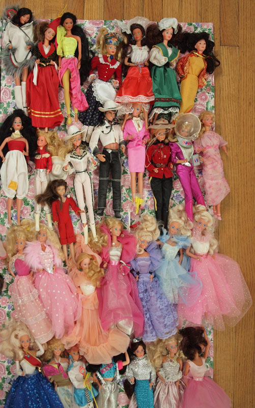 COLLECTION OF VINTAGE BARBIE DOLLS: First of 2 lots. Approx. 42 dolls. Attached to board. We are not Barbie experts. Estate found. Pictures tell the story.