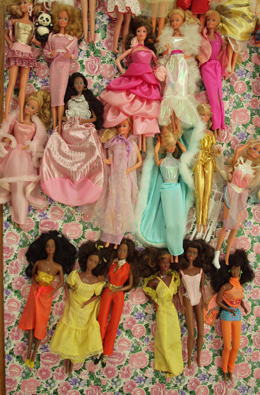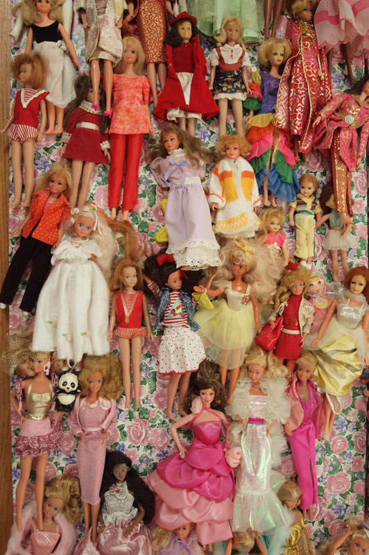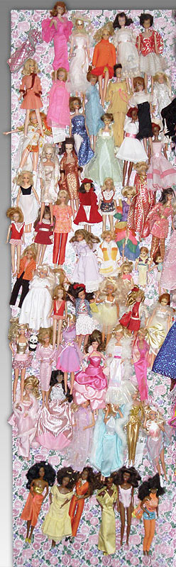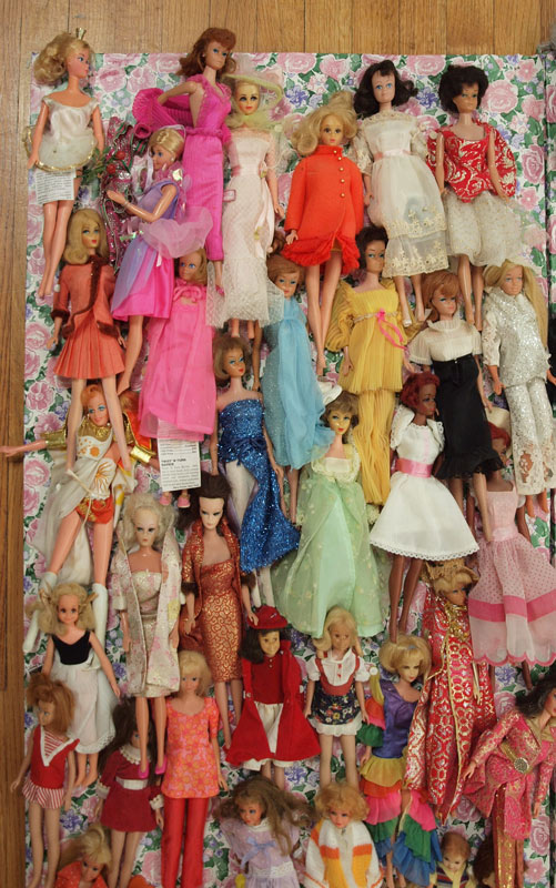 COLLECTION OF VINTAGE BARBIE DOLLS: Second of 2 lots. Approx. 57 dolls. Attached to board. We are not Barbie experts. Estate found. Pictures tell the story.
