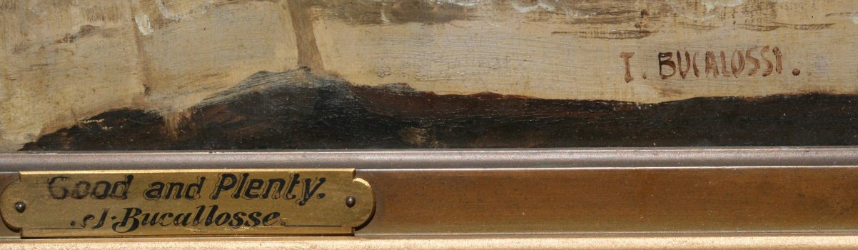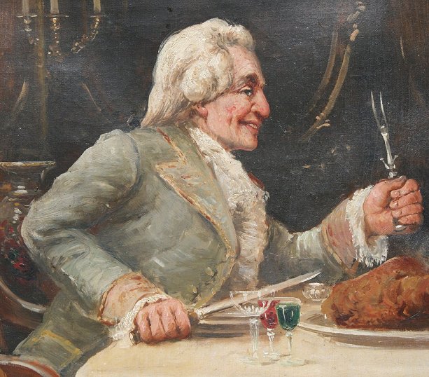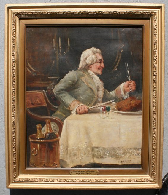 BUCALLOSE, J. (Italian, 19/20th C.): ''Good and Plenty,'' Gentleman Feasting, OIL/Canvas, 17'' x 14'', signed, framed 21 1/2'' x 19''.