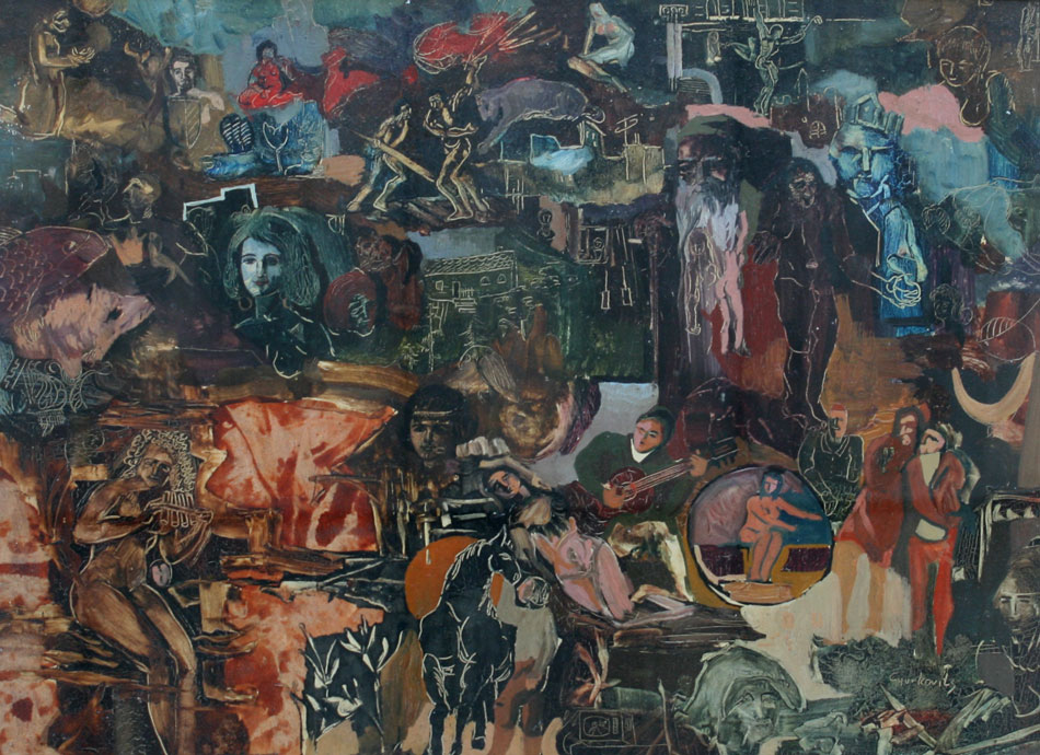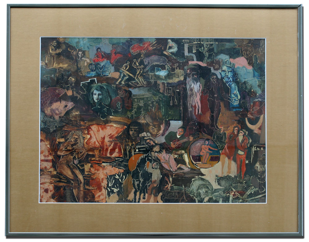 GYURKOVITS, Frantisek, (Hungarian, 1876-1968): Surrealist Scene Comprised of Faces Animals and Nude Scenes, OIL/Board, sight size 11 1/2'' x 15 1/2'', signed lower right, enclosed frame 16'' x 20''.