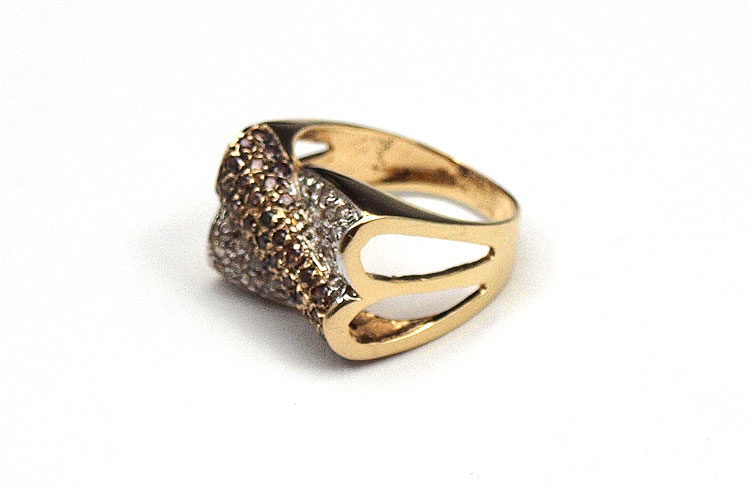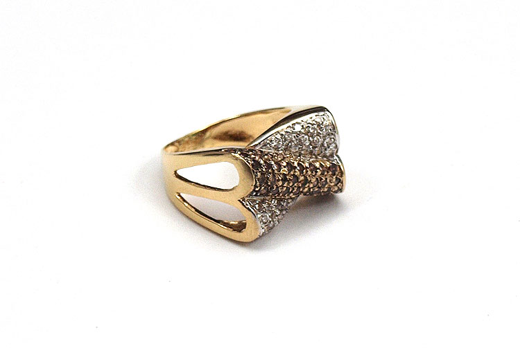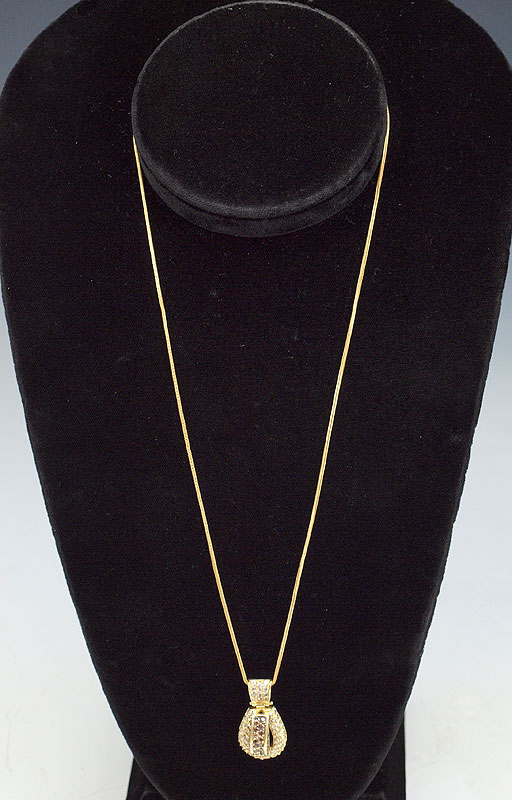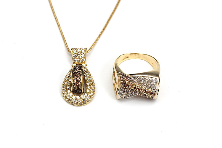 18K CZ NECKLACE & RING SET: 18K necklace and ring set contains CZ's and brown stones of unknown origin. Weight: 16.4 grams. Length: 20'' Size: 8