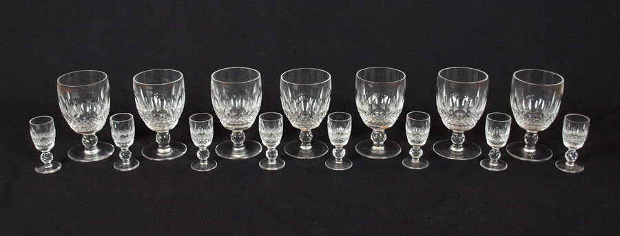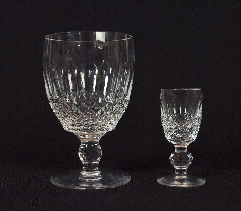 WATERFORD COLLEEN: 15 stems with faceted stems, to include 7 goblets, 5 1/4'' tall and 8 liqueurs, 3.25''.