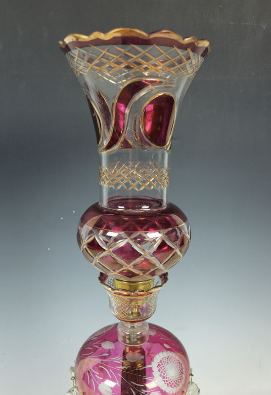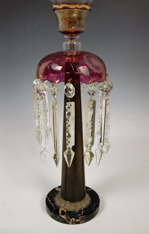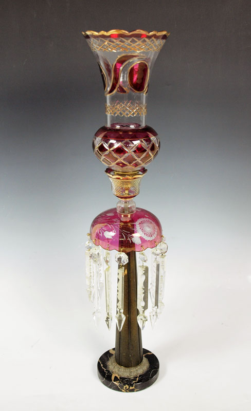 SINGLE BOHEMIAN GLASS LUSTER: 31'' tall single light ready to be wired for electricity or use as a candle lamp.