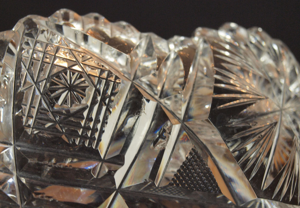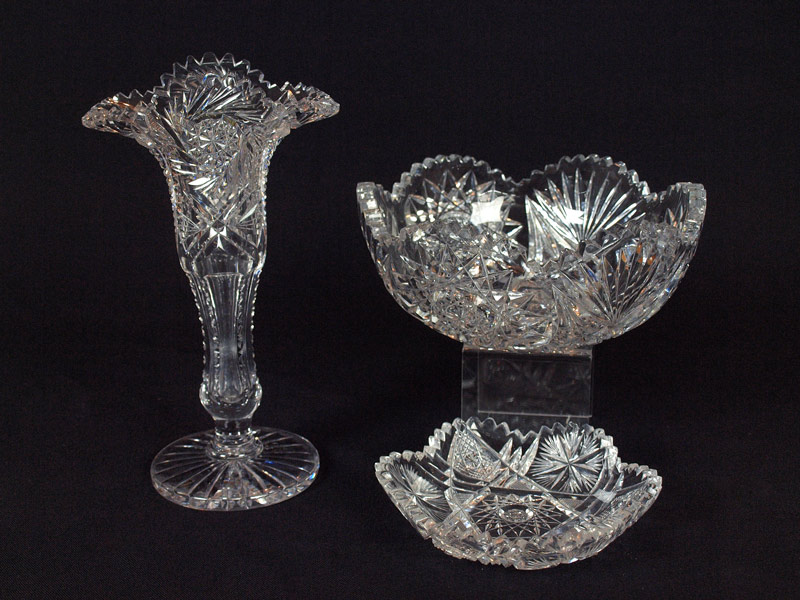 3 PIECE AMERICAN BRILLIANT PERIOD CUT GLASS: 1) A flared rim vase in an unusual form, 10''. 2) 8'' berry bowl. 3) a 6'' candy dish.