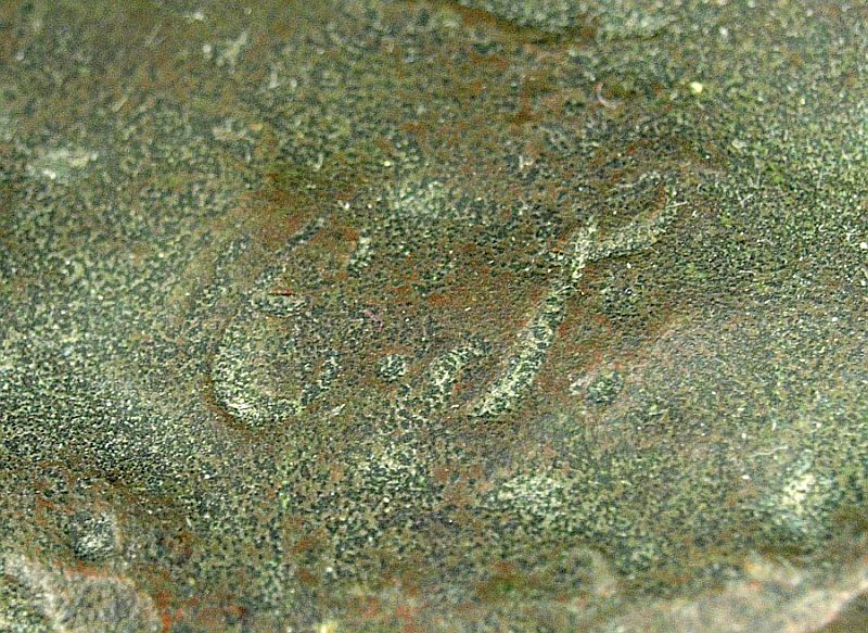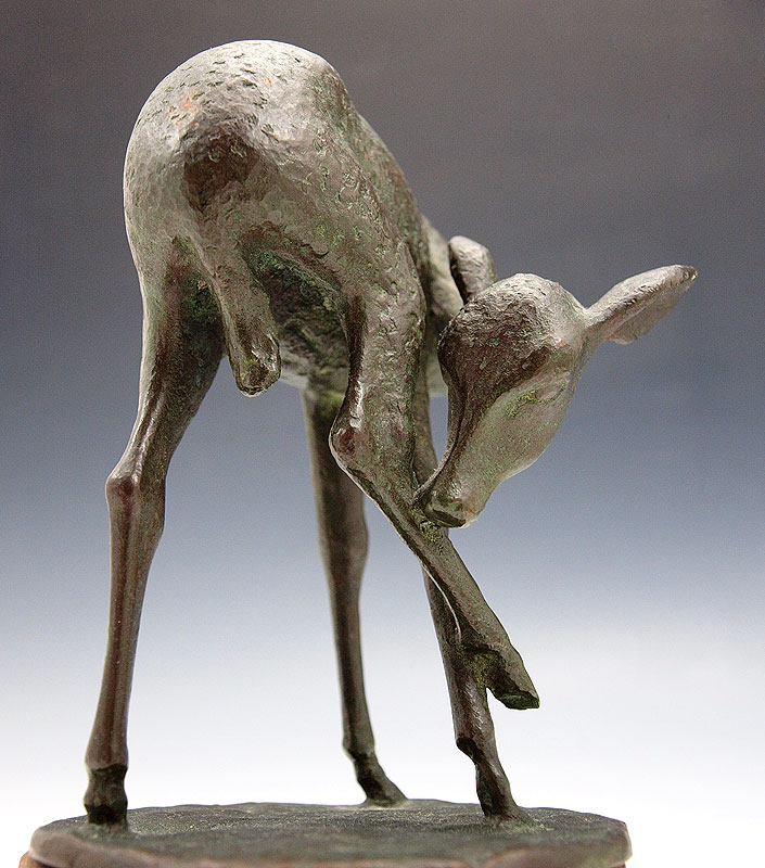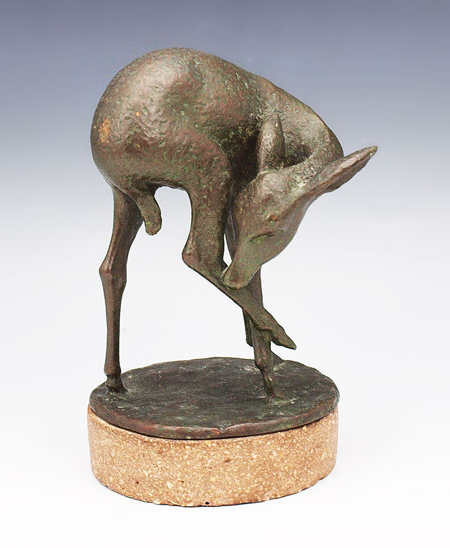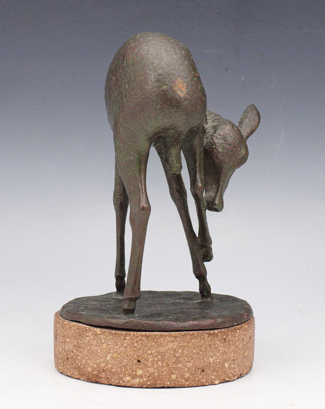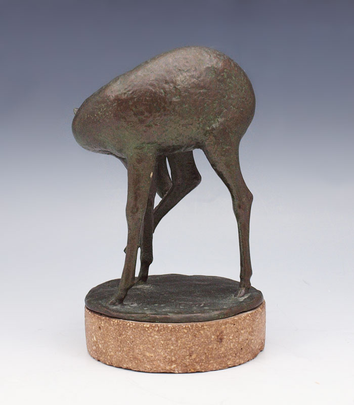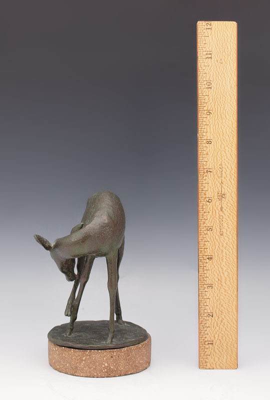 BRONZE DEER ON CEMENT PLINTH: 6 1/4'' h., illegibly marked, E P?