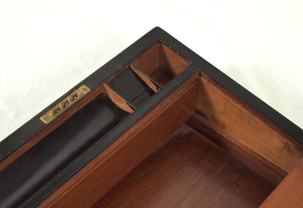CONDITION: Note splits to veneer, roughness to leather interior.