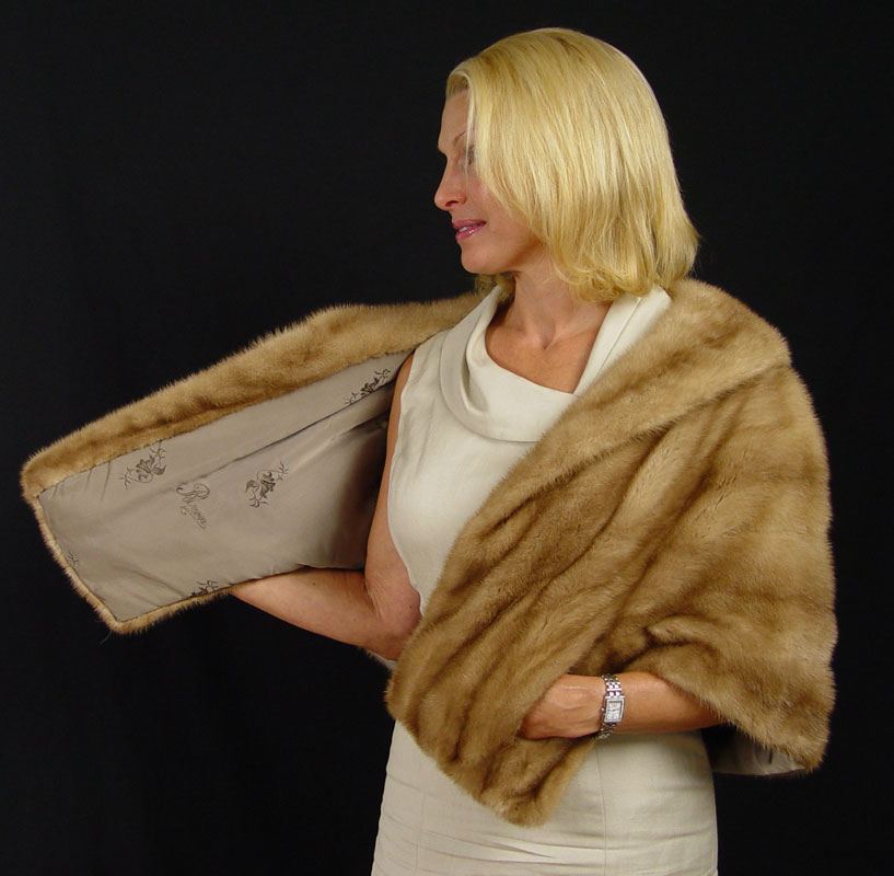CLASSIC MINK WRAP / STOLE: Two pockets, back approx. 20'', sides approx. 23''.