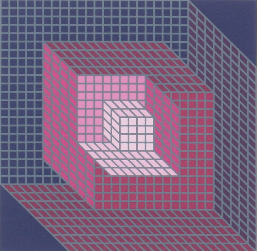 VASARELY, Victor, (Hungarian, 1908-1997): ''Axomett'', Serigraph, sight size 15'' x 15 1/4'', pencil signed and numbered 180/300, framed and matted, 28 1/2'' x 28''.