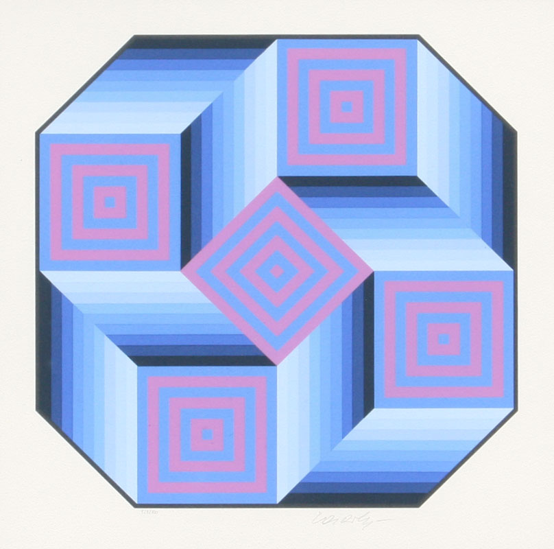 VASARELY, Victor, (Hungarian, 1908-1997): ''Octa'', Serigraph, sight size 14 1/4'' x 14 1/4'', pencil signed and numbered 128/300, framed, 27'' x 27''.