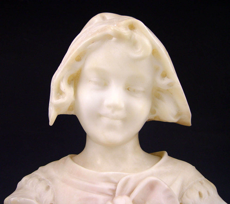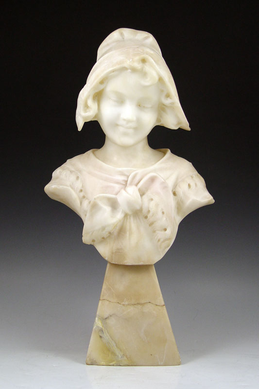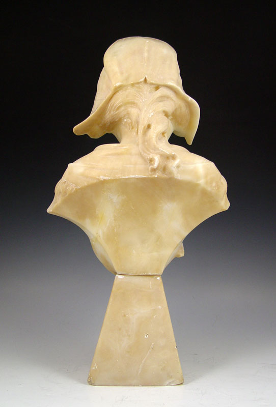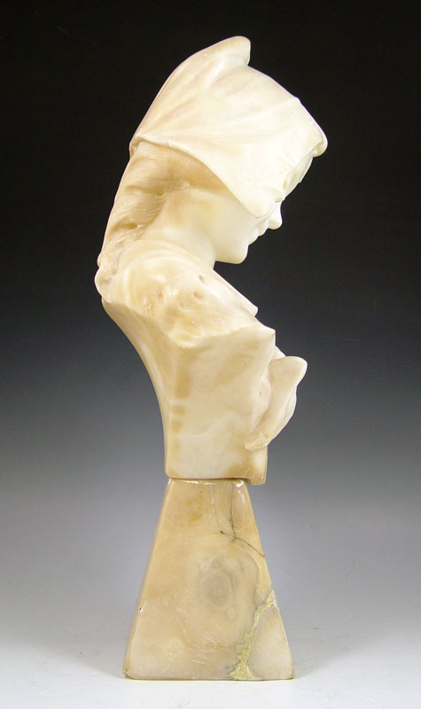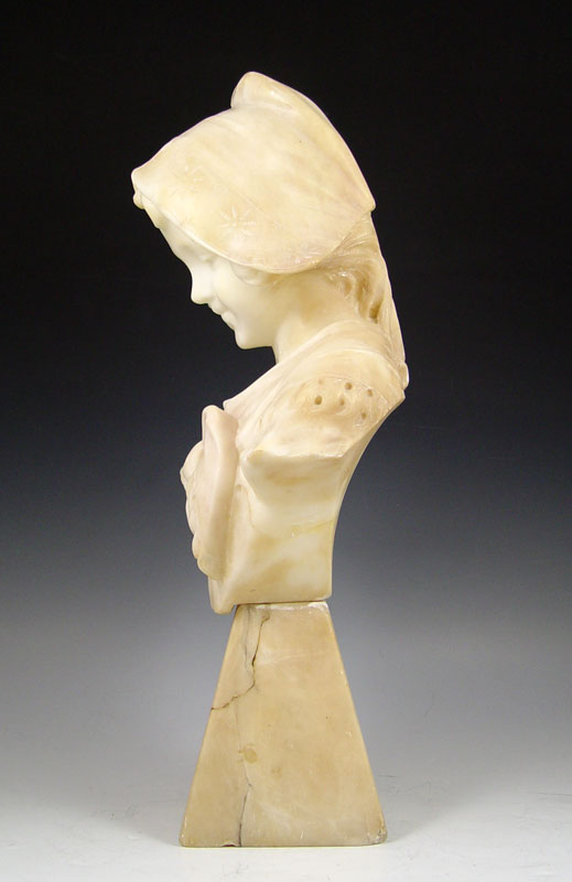 ALABASTER MAIDEN WITH BOW: Circa 1900, 19'' with plinth, repair to base.