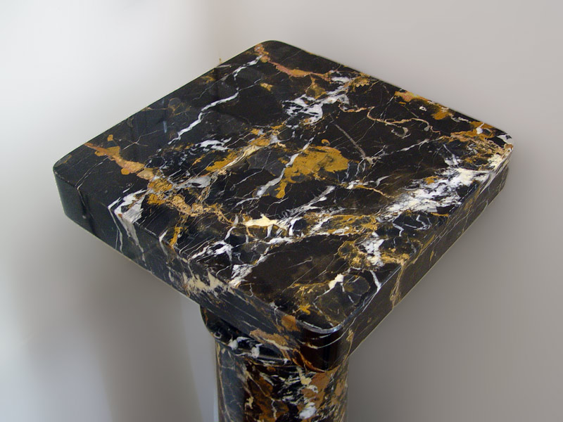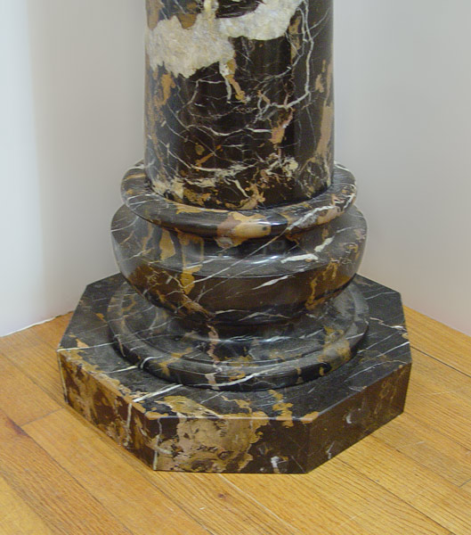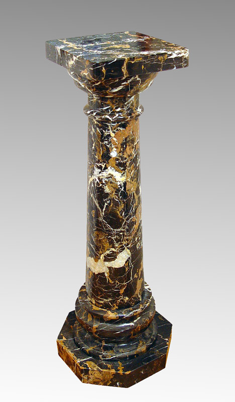 VARIEGATED MARBLE PEDESTAL: 43''h., 12'' square top and 15'' octagonal base.