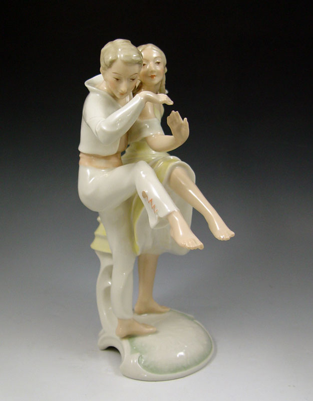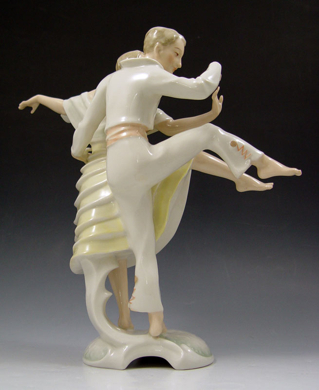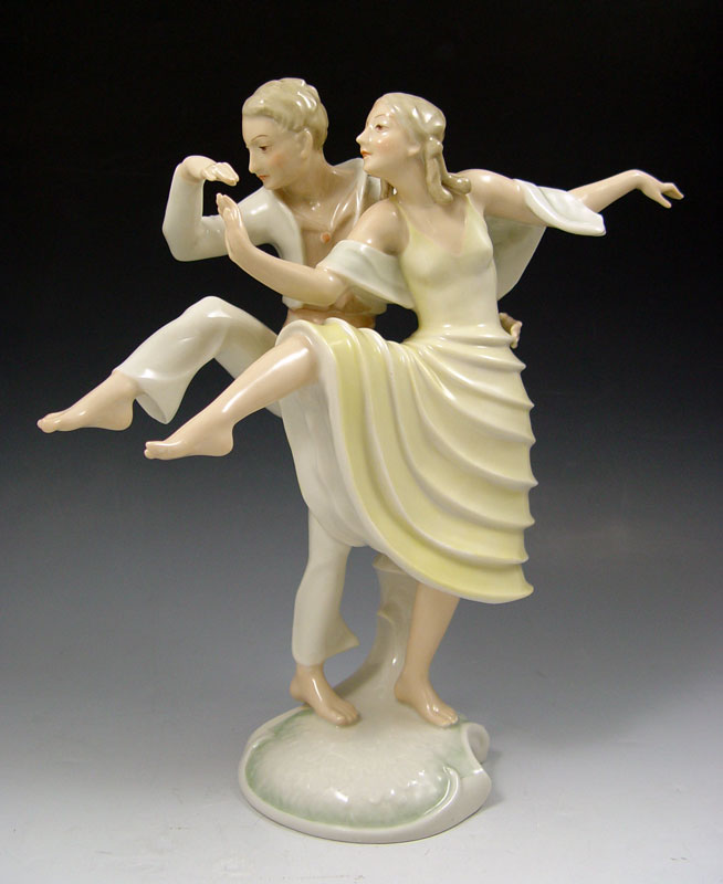 HUTSCHENREUTHER ART DECO FIGURAL DANCERS: 10 1/2'' h., 11'' wide overall.