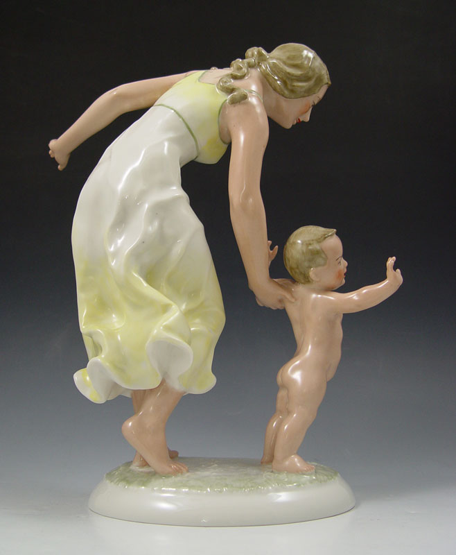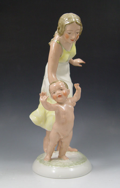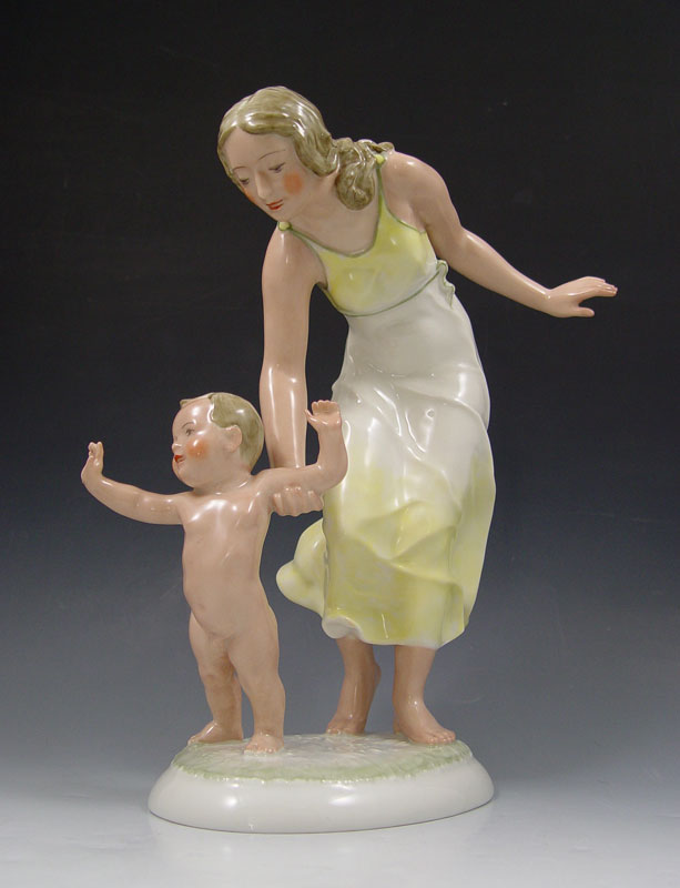 HUTSCHENREUTHER PORCELAIN FIGURE OF WOMAN WITH CHILD: Designed by C. Werner. 11''
