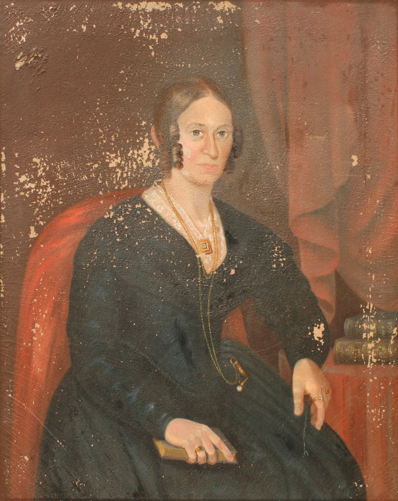 EARLY AMERICAN PRIMITIVE PORTRAIT PAINTING: Fine Quality, depicts a seated young woman, Oil/Canvas, 36'' x 28 3/4'', unframed, no visible signature.