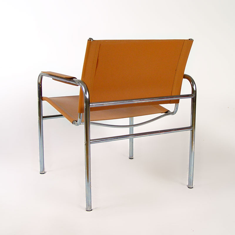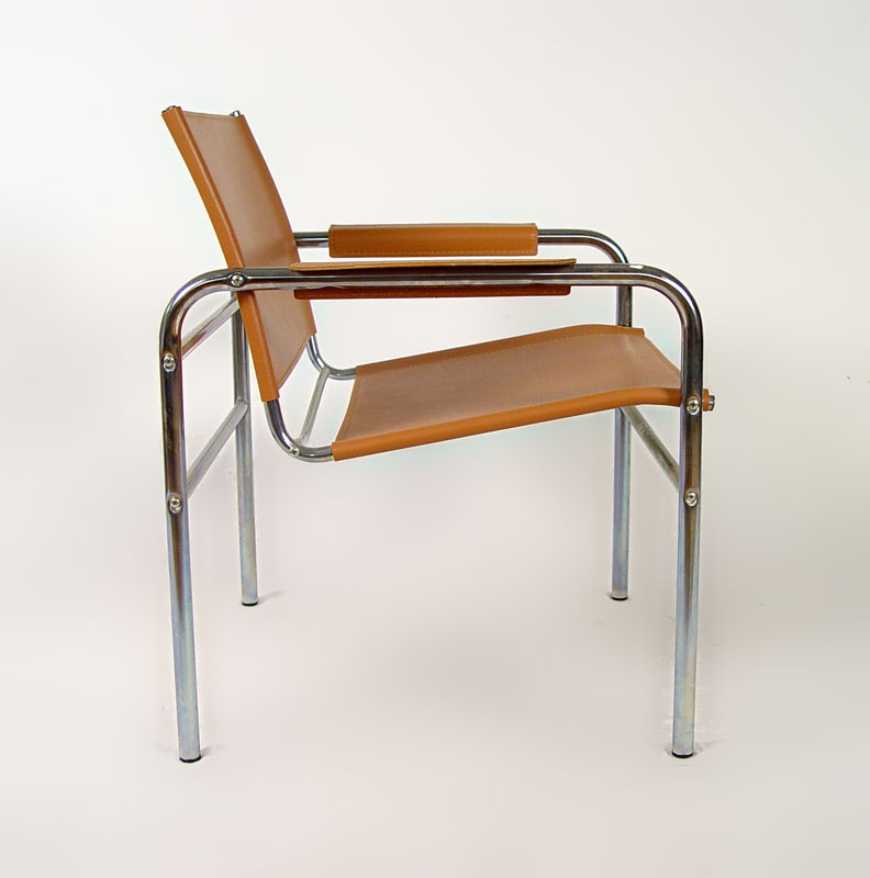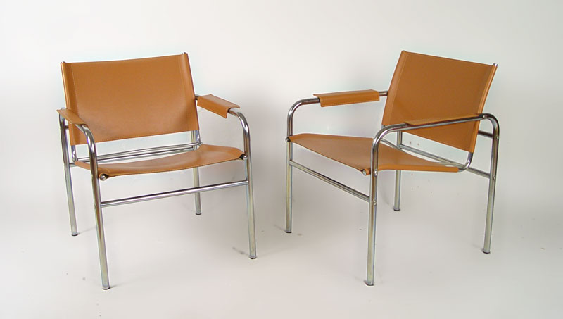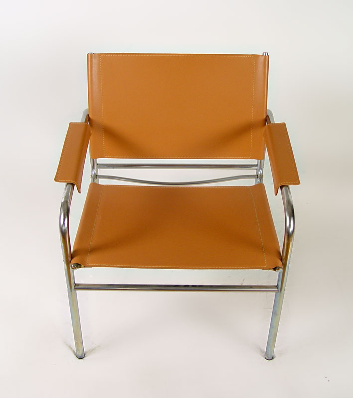 STEEL FRAME MODERN LEATHER SEAT CHAIRS: Inspired by the ''Wassily'' chair. Measures 29 3/4'' h. x 20 1/2'' x 26''.