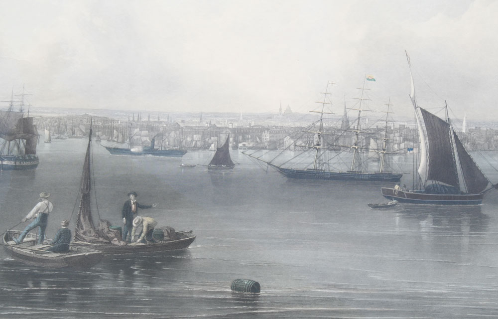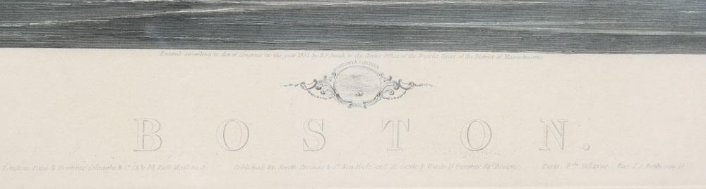 HUGE MOTTRAM ENGRAVING 1857 BOSTON AFTER J. W. HILL.: Sight size 29 1/4'' x 42 1/2'', framed, 42 1/2'' x 55''.
