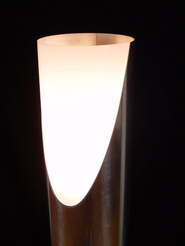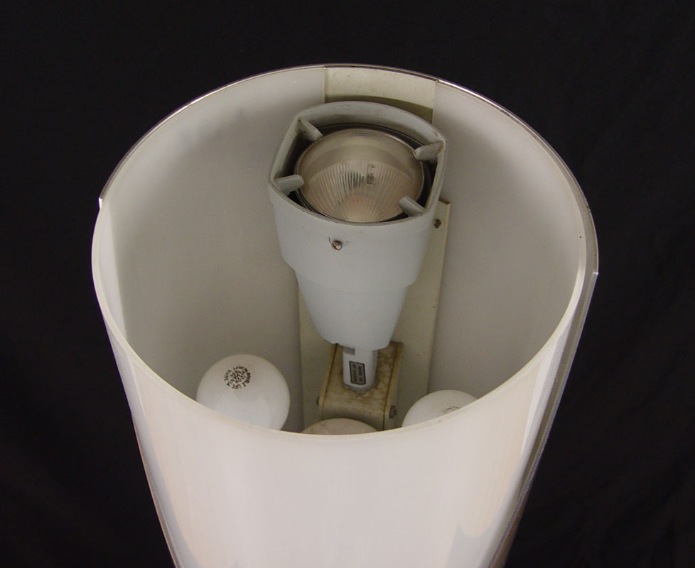 1970'S TUBULAR CHROME FLOOR LAMP: Great ambiance from the five lights, plastic shade. 5' 4'' tall x 9 3/4'' dia.