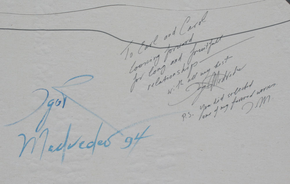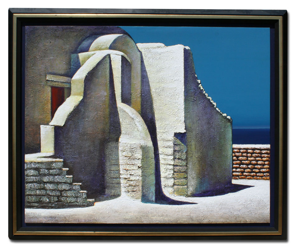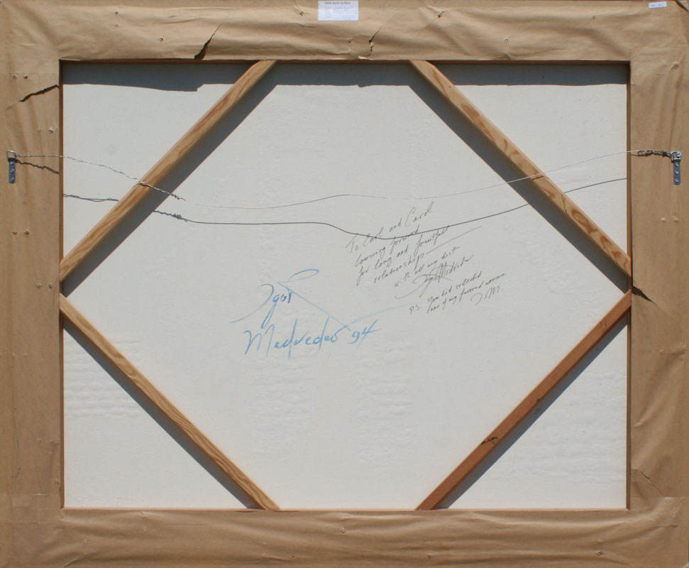 MEDVEDEV, Igor, (Russian, 1931-): Outside a Greek Dwelling, OIL/Canvas, signed, dated verso, 48'' x 60'', framed, 57 1/2'' x 69''. Purchased directly from the artist.