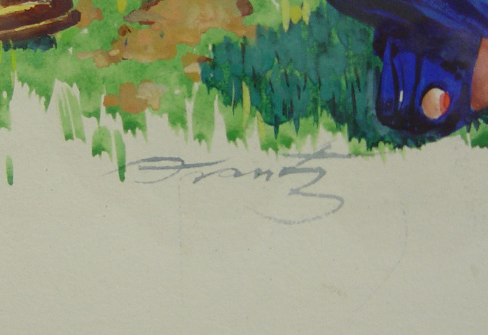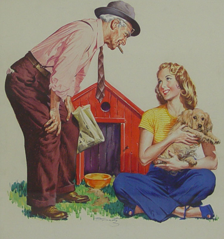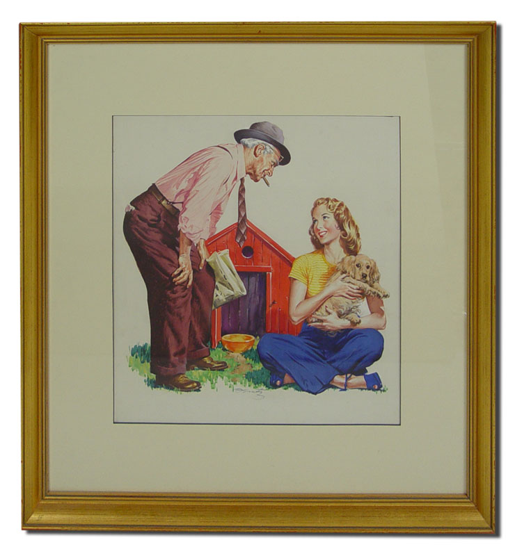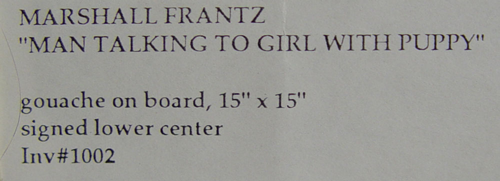 FRANTZ, Samuel Marshall, (American, 1890-): Illustration, Old Man and Woman with Dog, sight size 16'' x 16'', signed, framed, 26 1/2'' x 26 1/2''.