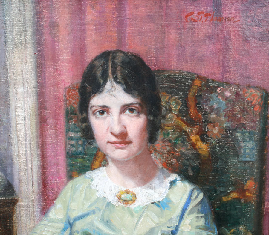 THOMSON, William T., (American, 20th C.): Portrait of Woman, Oil/Canvas, 36'' x 28'', signed, gilded Newcomb Macklin frame with minor wear, 40 1/2'' x 32 1/2''.
