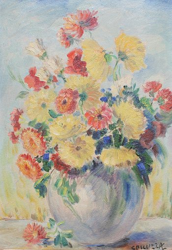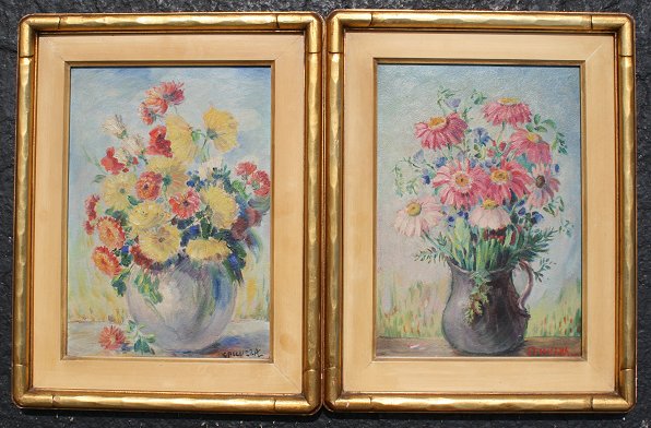 SPICUZZA, Francesco J., (American, 1883-1962): 2 Floral Still Lifes, Oil/CB, 14'' x 10'', signed, matching gilded frames, 18'' x 14 1/2''.