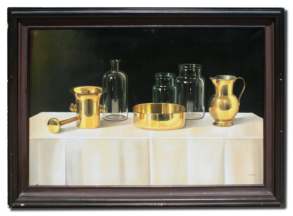 GOMBAR, Andras, (France, 1946-): Still Life, OIL/Canvas, 24'' x 36'', signed, framed, 30'' x 42''.