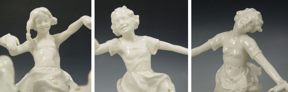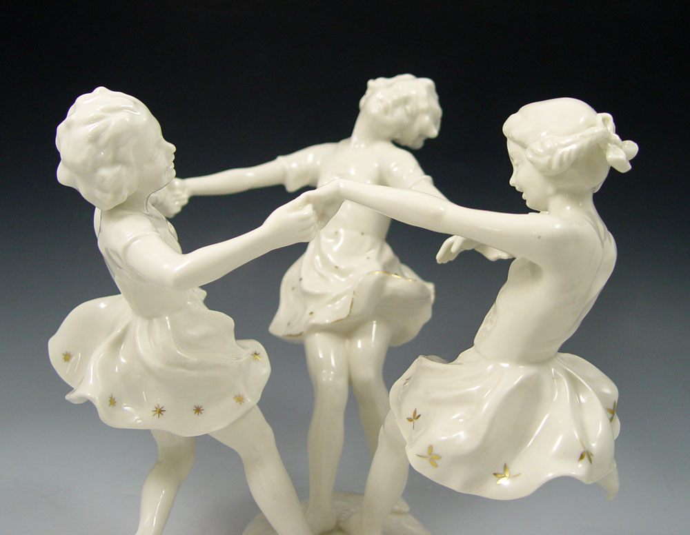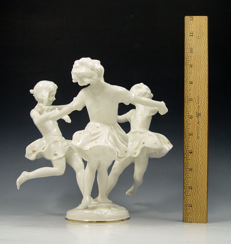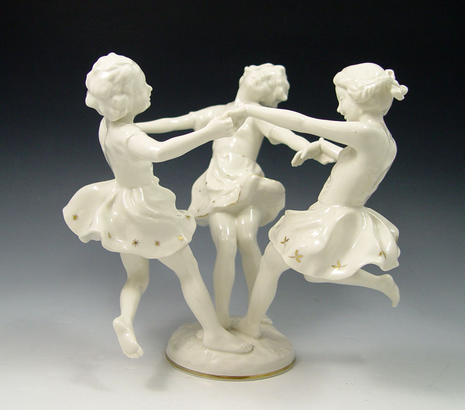 HUTSCHENREUTHER RING OF CHILDREN: Designed by K. Tutter. Blanc de chine with gold stars on the skirts. 8 1/2'' h. x 9'' dia. overall.