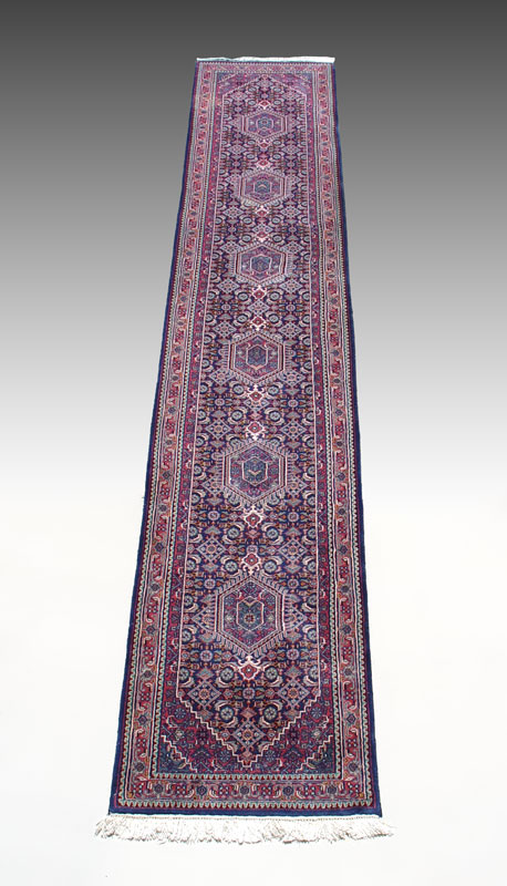 INDO BIDJAR HAND TIED RUNNER: Approx. 14' x 2'6''.