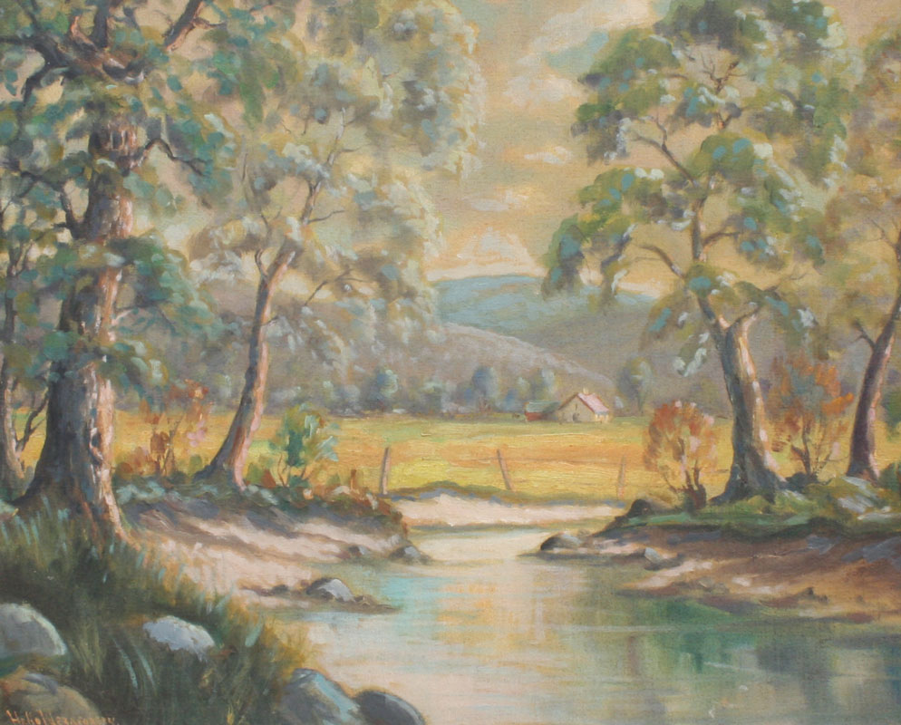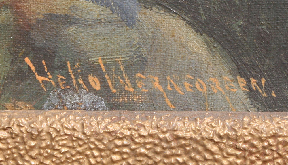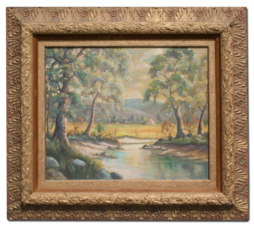 WERNEGREEN, Helio, (American, 1907-1979): Ozark Landscape, OIL/Canvasboard, 22'' x 27'', signed, period gilded and carved and painted foliate motif frame with wear, 35'' x 40''.