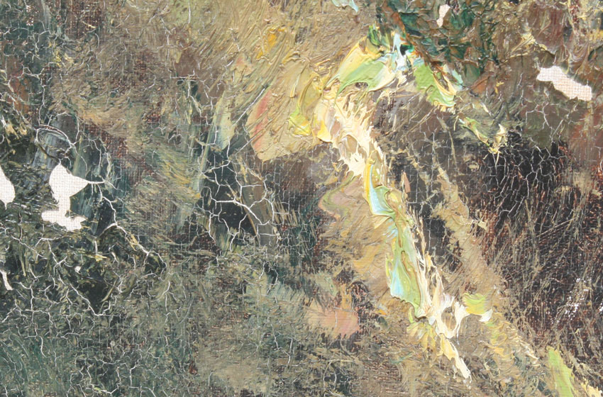 CONDITION: Scattered flecking with water damage, will need restoration.