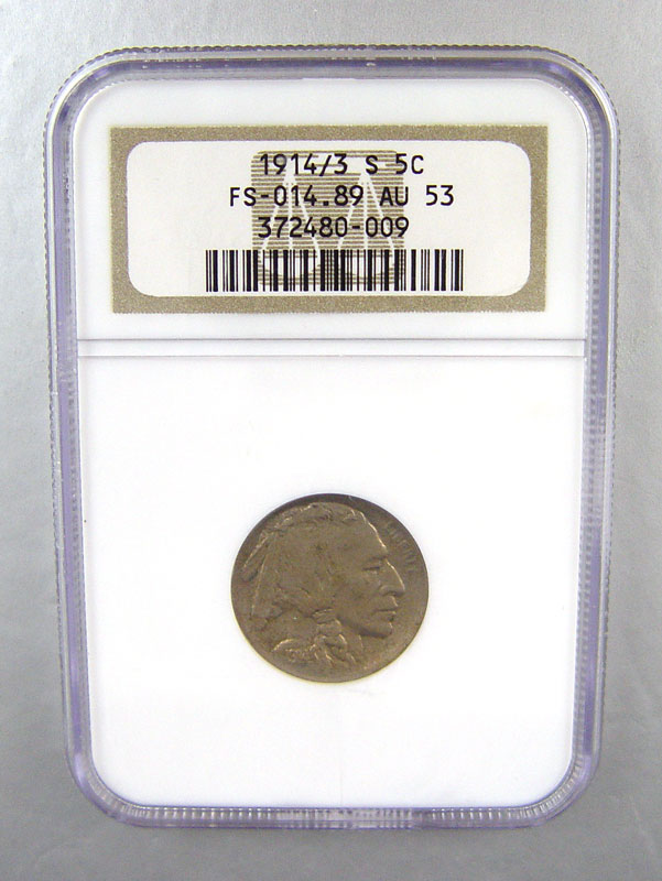 1914/3 S BUFFALO NICKEL AU53 NGC: Popular nickel for collection in AU53 condition, NGC graded.
