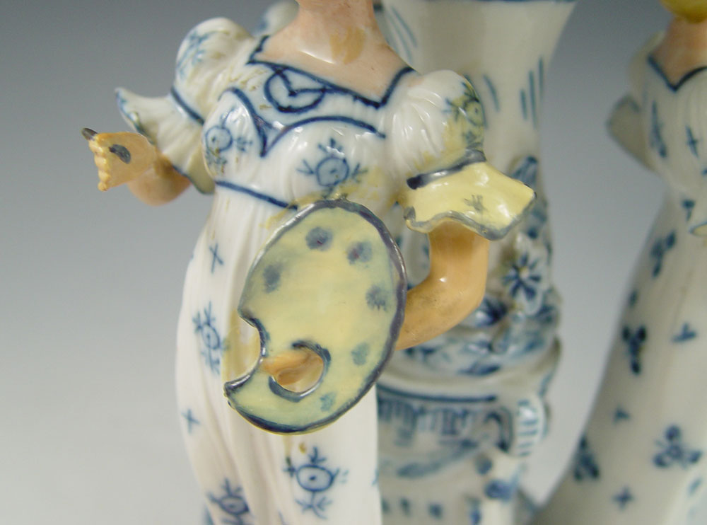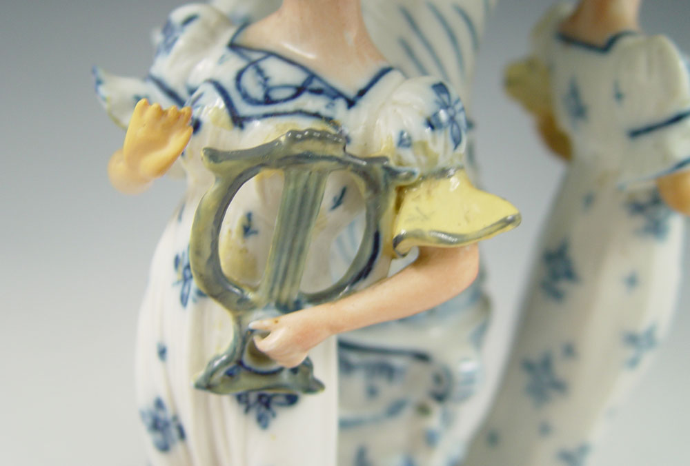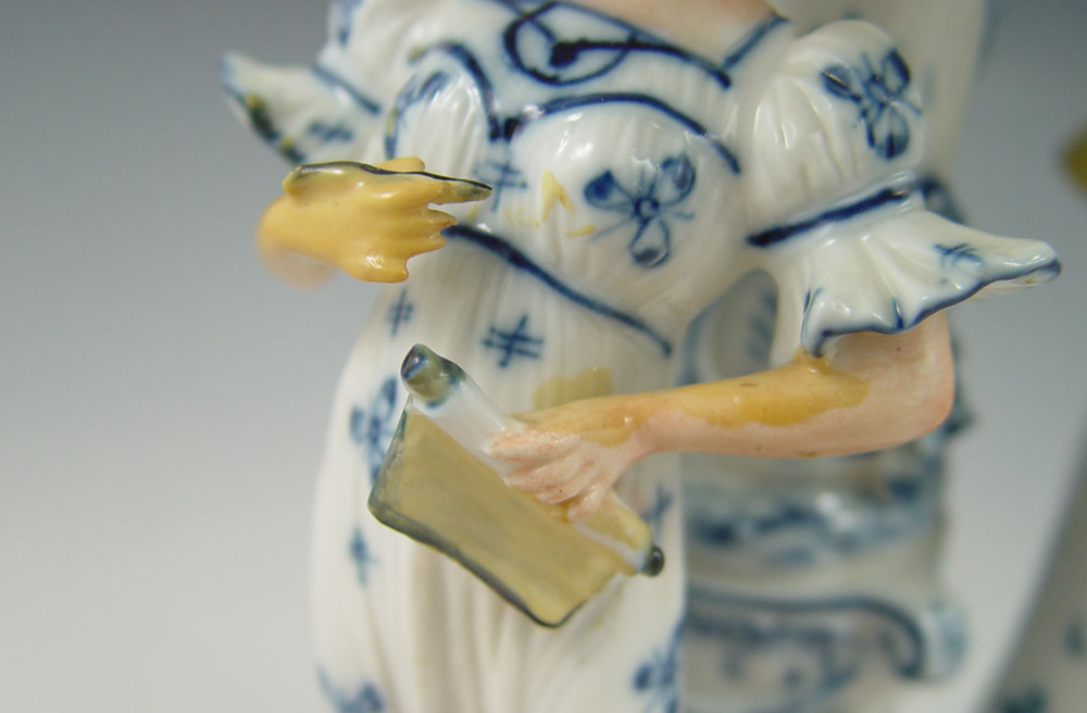 CONDITION: Some of the glaze has been worn off the interior of the bowl. There is overpaint on the figures.