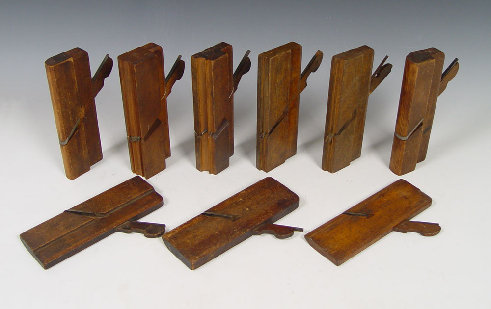 COLLECTION OF WOOD MOLDING PLANES: 21 assorted mold shapes by assorted makers to include A. Mathieson & Son, Ohio Tool co., Currie, Sargent & Co. and others.