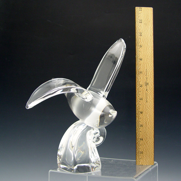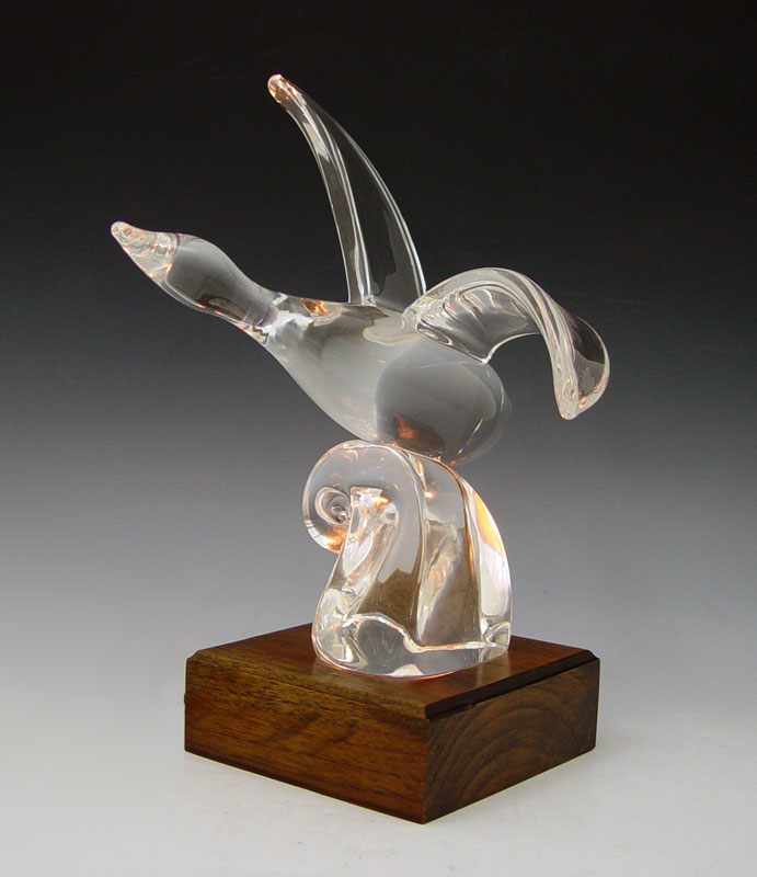 STEUBEN CRYSTAL DUCK: Signed, 9 3/4'' x 9 3/4'' x 8''. Sold with lighted base.
