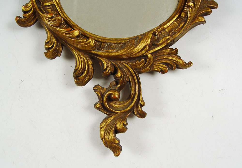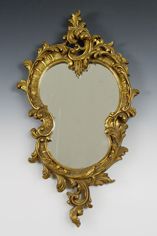 ROCOCO GILT WOOD MIRROR: Deep frame, 30 1/2'' x 17''.