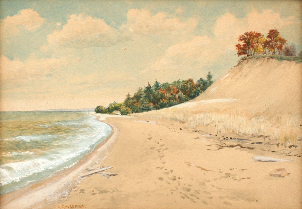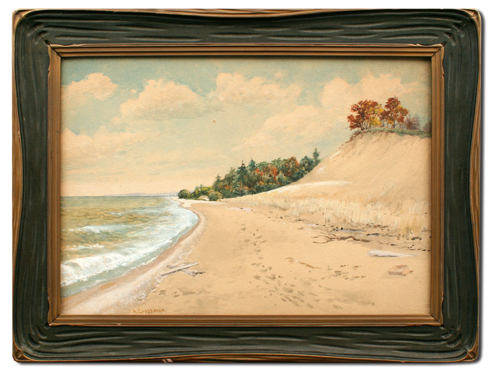 CROSSMAN, Abner, (American, 1847-1932): Shoreline Scene, Watercolor, 13 1/2'' x 19 1/2'', signed, carved and painted frame, 18 1/2'' x 24 1/2''.