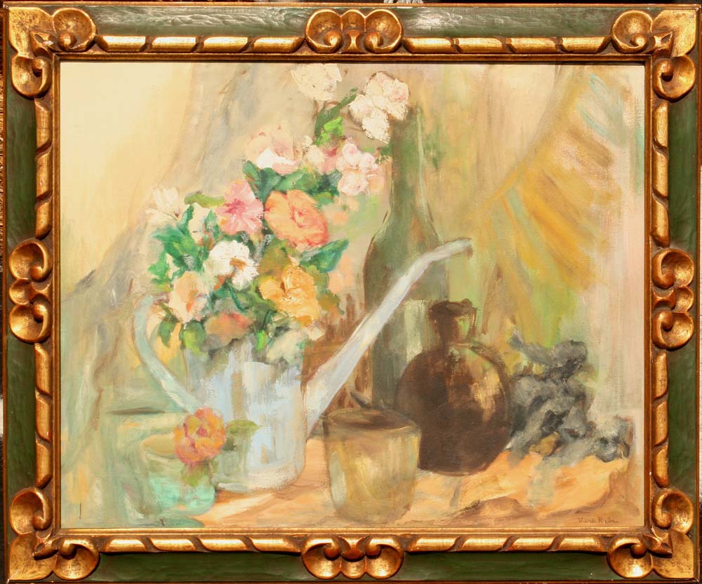 RABE, Vera, (American, 20th Century): Floral Still Life, OIL/Canvas, 24'' x 30'', signed, carved and painted gilded gesso frame with minor wear, 32'' x 38''.