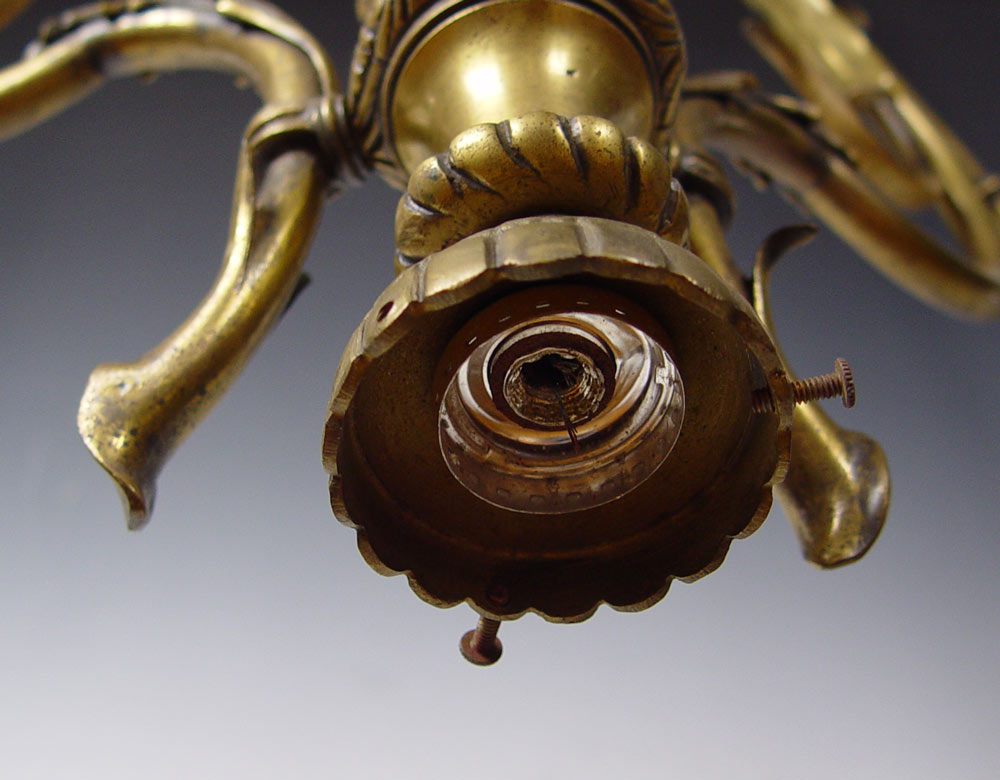 CONDITION: The shades are ones we had hanging around that just matched this light too well to pass by. They are missing a couple of petals and have a crack or two but still look great with this light.
